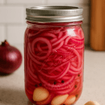 These quick pickled onions are the perfect way to elevate just about any dish—tacos, bowls, salads, burgers, or sandwiches. They’re tangy, a little sweet, and come together with just a few pantry staples. Bonus: they last for weeks in the fridge and only get better with time! I used this rotary grater for quick prep and store them in these mason jars for convenience.